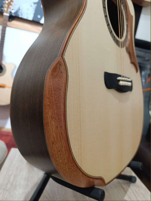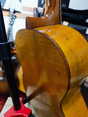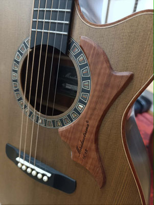 Korpus: Vollmassiv, selektierter geflammter Ahorn, ausschließlich luftgetrocknet